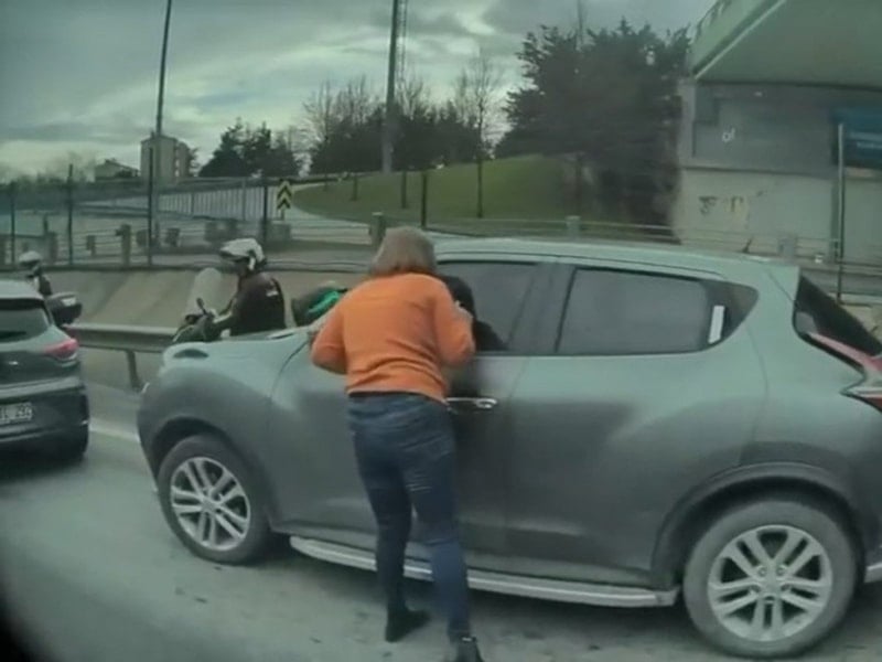 İstanbul Şişli'de trafikte çıkan tartışmada otomobilin önünü keserek aracından inen kadın sürücü, diğer sürücüye küfredip önce aracın camını yumrukladı ardından yan aynasını kırdı.
