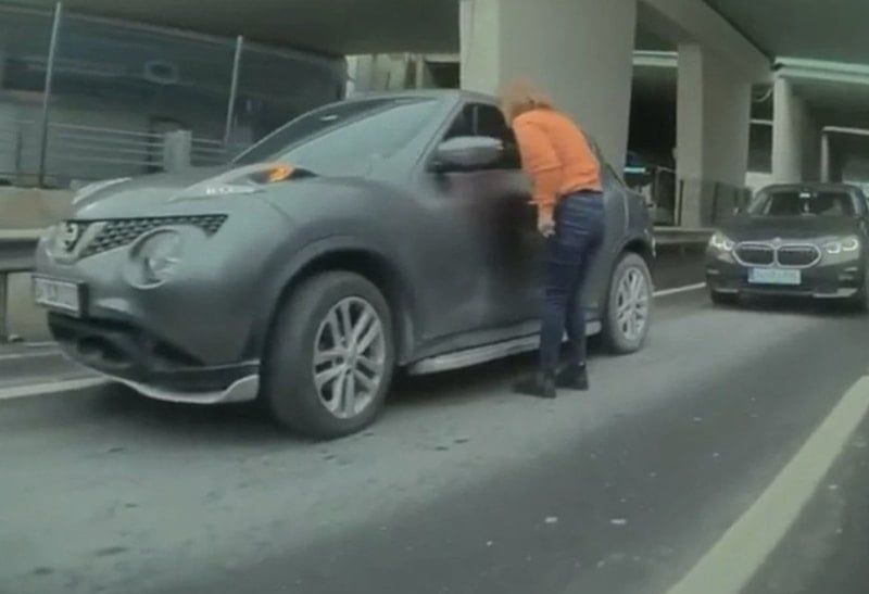 Saldırgan sürücü daha sonra aracına binerek olay yerinden uzaklaşırken, bölgede bulunan başka sürücülerin de olayı kaydettikleri görüldü.