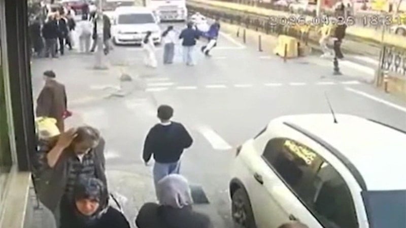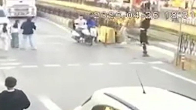 İstanbul Sultangazi'de yolun karşısına geçmeye çalışan yayaya motosikletin çarpması güvenlik kamerasına yansıdı.