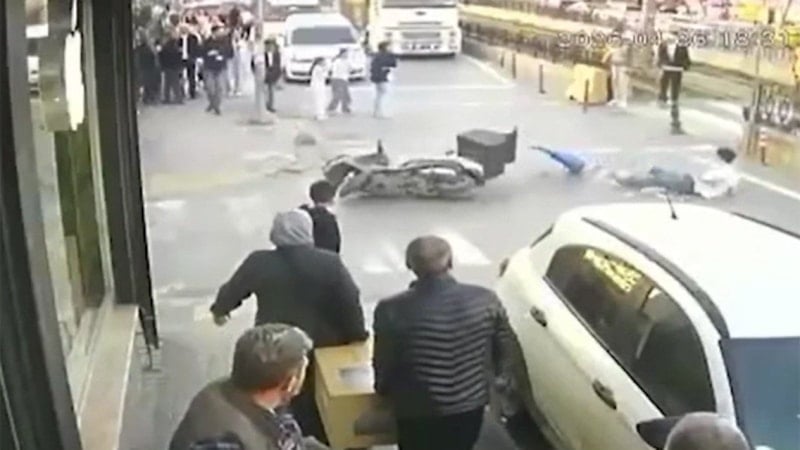 Öte yandan kaza, çevredeki bir güvenlik kamerasınca kaydedildi.