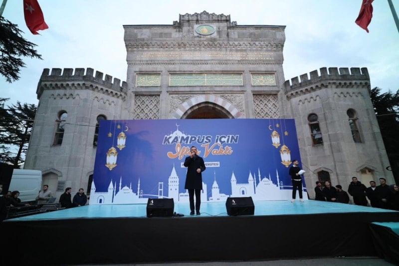 28 Şubat dönemini hatırlatan İbiş, “Buralarda geçmiş yıllarda yaşananlar maalesef akıllarımıza kazındı, buralarda ikna odalarını kurmaya çalıştılar. Duyuyoruz, anlatıyoruz, okuyoruz, biliyoruz. İstanbul Üniversitesi'nde ikna odalarını yaşatmaya çalıştılar bir nesle. Bir nesle sırf kılık kıyafetinden dolayı bu üniversitenin şu arkamızda gördüğünüz kapısından içeri almadılar. Ama hamdolsun öyle bir irade geldi ki, öyle bir nesil geldi ki o tarihlerde ikna edemediklerinin çocukları bugün İstanbul’da Ramazan'ın coşkusunu hep birlikte yaşıyor. Bizler bu iradeyi, bu denli hürriyetimizi, inandıklarımızla beraber yaşama özgürlüğümüzü bu iradenin sahibi Cumhurbaşkanımız Recep Tayyip Erdoğan'a borçluyuz.” dedi.
