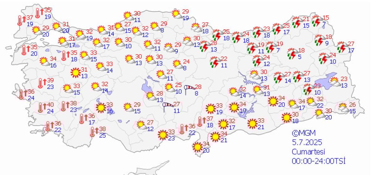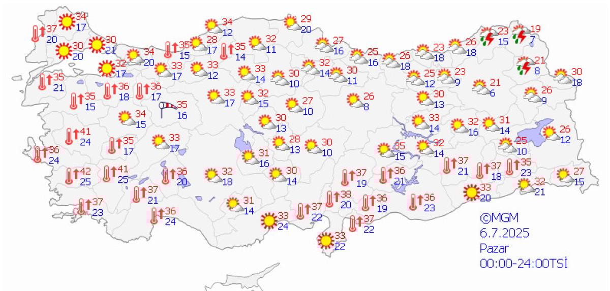Valiliğin sosyal medya hesabından yapılan açıklamada, Meteoroloji Genel Müdürlüğü'nün değerlendirmelerine göre kentte mevsim normalleri civarında seyreden hava sıcaklığının, 5 Temmuz Cumartesi gününden itibaren mevsim normallerinin 4-6 derece üzerine çıkacağının tahmin edildiği belirtildi.