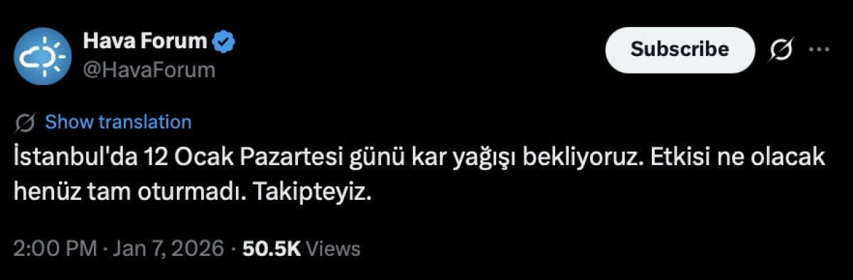 “İstanbul'da 12 Ocak Pazartesi günü kar yağışı bekliyoruz. Etkisi ne olacak henüz tam oturmadı. Takipteyiz."