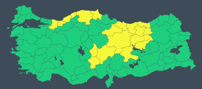 Ayrıca meteoroloji tarafından 19 ile sarı kodlu uyarı verildi. Uyarı verilen iller arasında; Erzincan, Giresun, Gümüşhane, Kastamonu, Kayseri, Malatya, Nevşehir, Niğde, Ordu, Sakarya, Sinop, Sivas, Tokat, Trabzon, Tunceli, Zonguldak, Bayburt, Bartın, Düzce yer aldı.