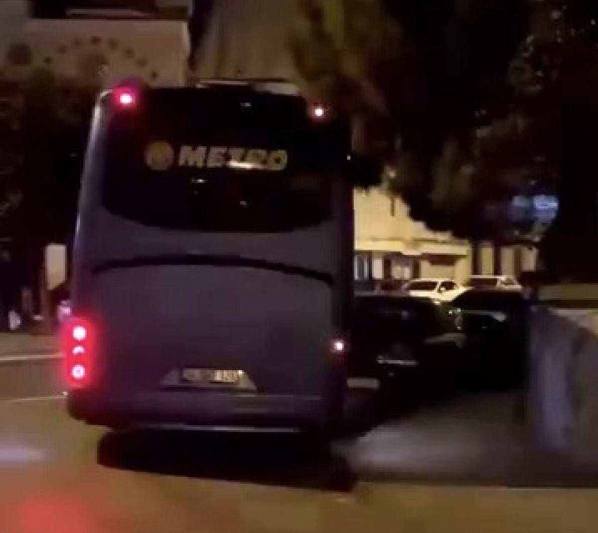 Otobüsün araçlara çarptığı anlar cep telefonu kamerasına yansıdı.
