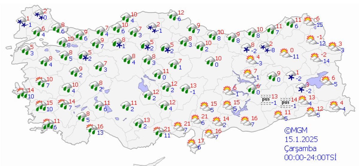 Yağışların, Marmara’nın güney ve doğusu, Kuzey ve Kıyı Ege, Batı Karadeniz kıyıları, Tekirdağ, Eskişehir, Uşak, Bolu ve Düzce çevreleri ile Antalya’nın doğu kesimlerinde yerel kuvvetli olması beklendiğinden yaşanabilecek olumsuzluklara karşı dikkatli ve tedbirli olunması gerekmektedir.