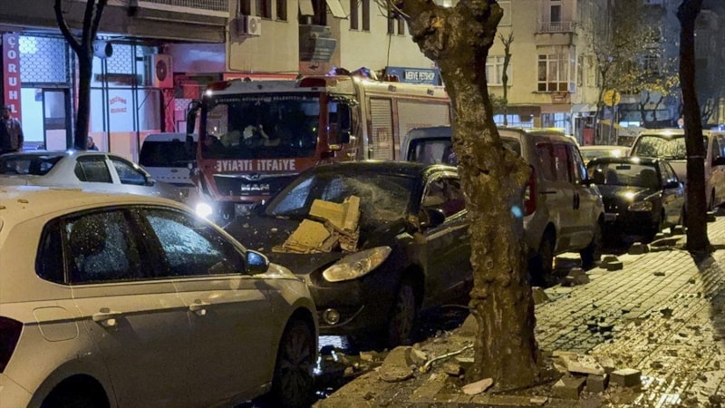Balkonlardan kopan beton parçaların bir kısmı sokağa, bir kısmı ise park halindeki araçların üzerine düştü.