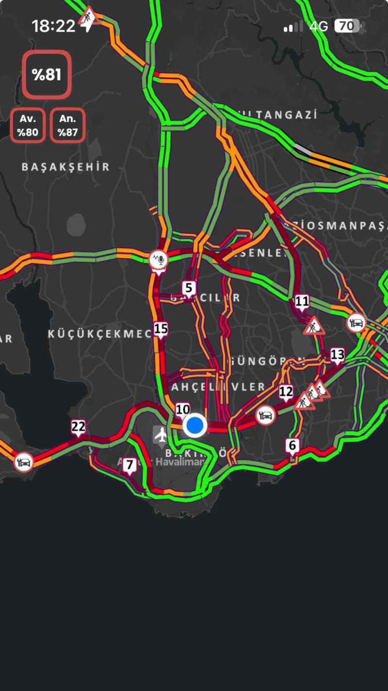 Özellikle E-5 Karayolu boyunca hem Anadolu hem de Avrupa yakası istikametlerinde trafik neredeyse durma noktasına geldi. Bahçelievler Yenibosna mevkiinde oluşan araç yoğunluğu, sürücülere zor anlar yaşattı.
