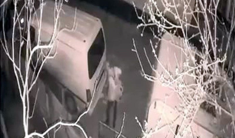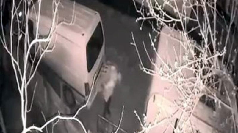 Şapka ve mont giyen kimliği belirsiz bir kişi, park halindeki hafif ticari aracın yanına geldi.