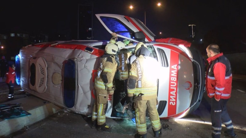 Kartal'da hasta taşıyan ambulans ile cip kafa kafaya çarpıştı. Çarpışmanın şiddetiyle devrilen ambulanstaki hasta ve 2 sağlık personeli yaralandı.