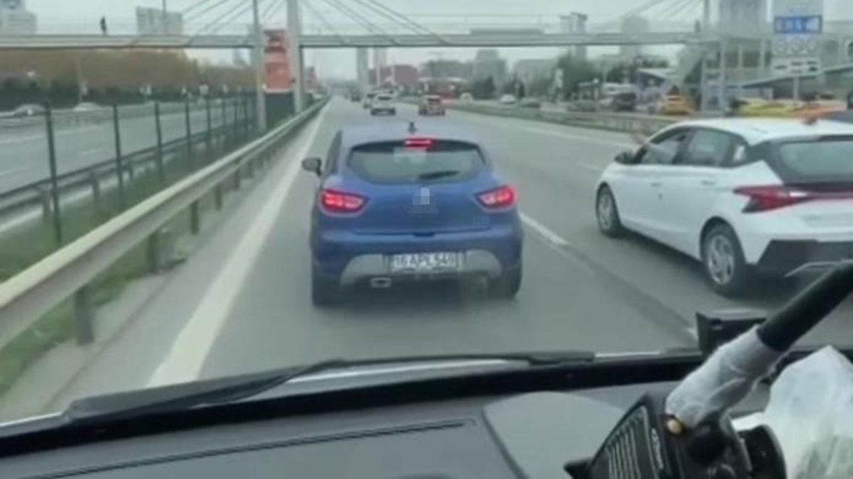 Sol şeritte olmasına rağmen düşük hızda ilerleyen sürücü, aynı zamanda trafikteki akışı yavaşlattı.