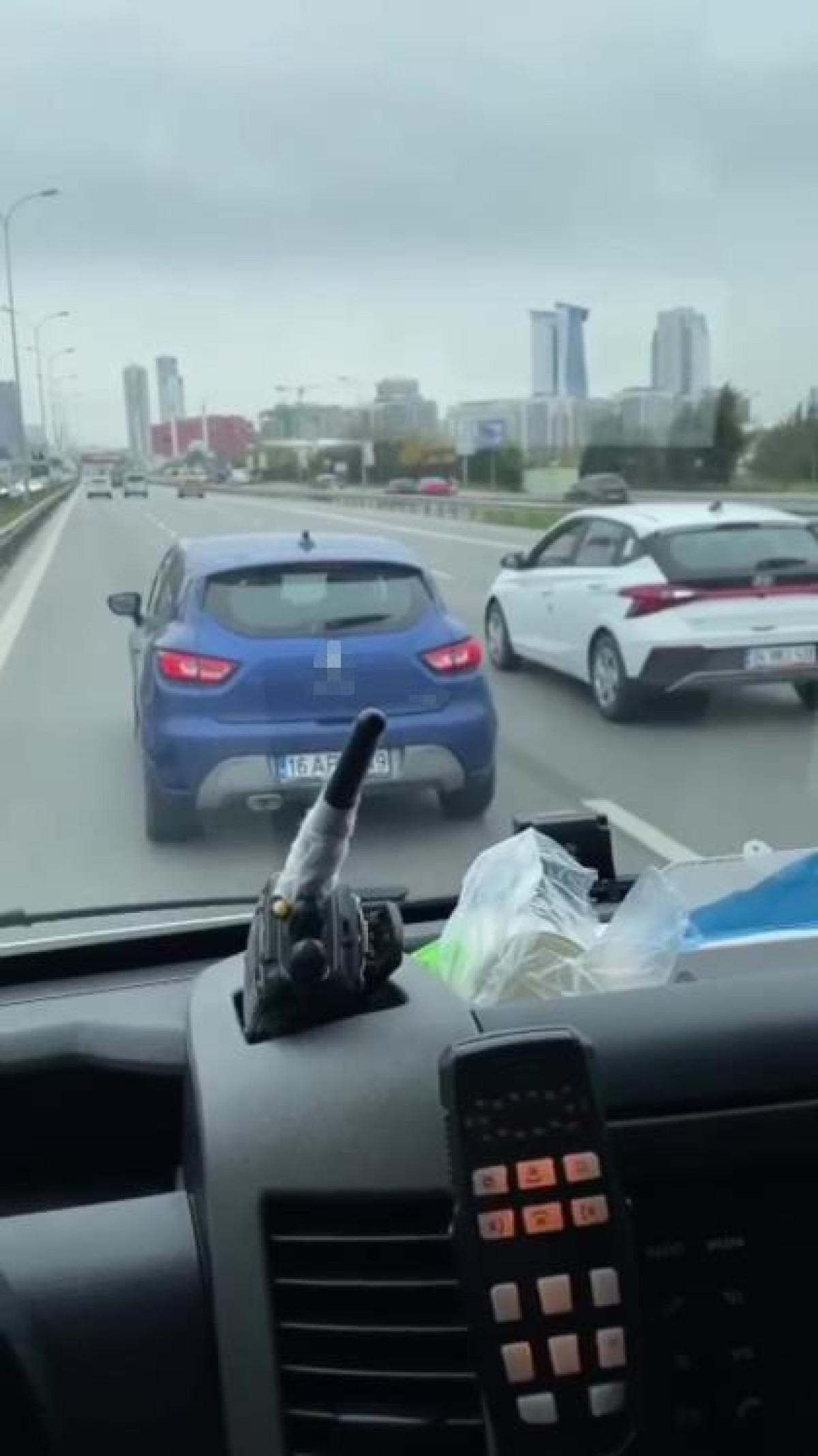 E-5 karayolu Maltepe mevkiinde yaşanan olayda, ambulansın önünde ilerleyen bir otomobil sürücüsü, dakikalarca ambulansın ilerleyişini engelledi.