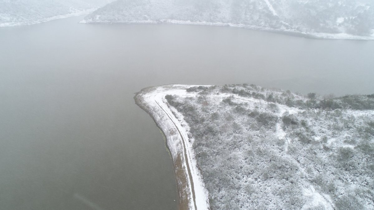 Yaklaşık 2 hafta önce yüzde 29 seviyelerindeki suyun, hafta sonu boyunca etkili olan kar yağışı ile birlikte yüzde 40'ın üzerine çıktığı Alibeyköy Barajı da havadan görüntülendi.