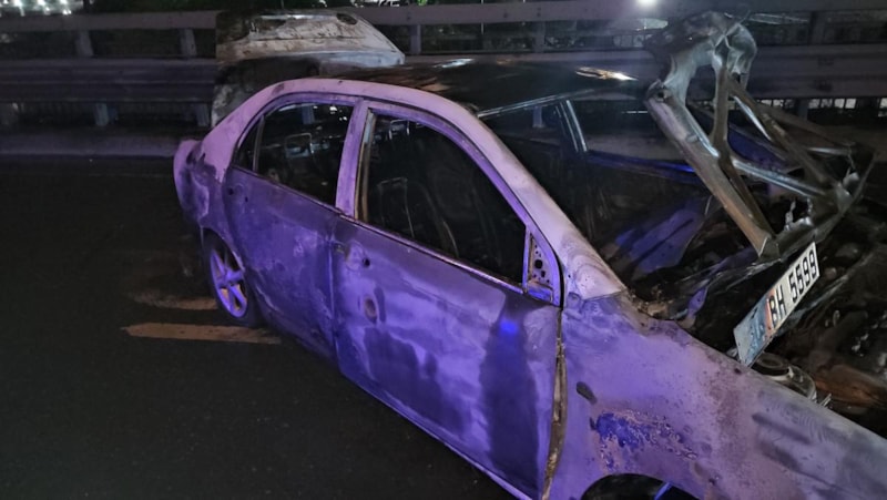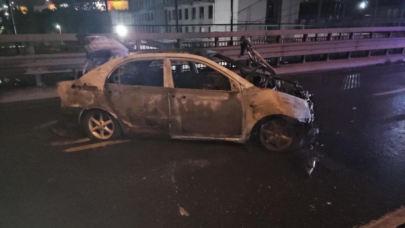 Kazanın ardından otomobil bilinmeyen bir sebeple alev aldı.