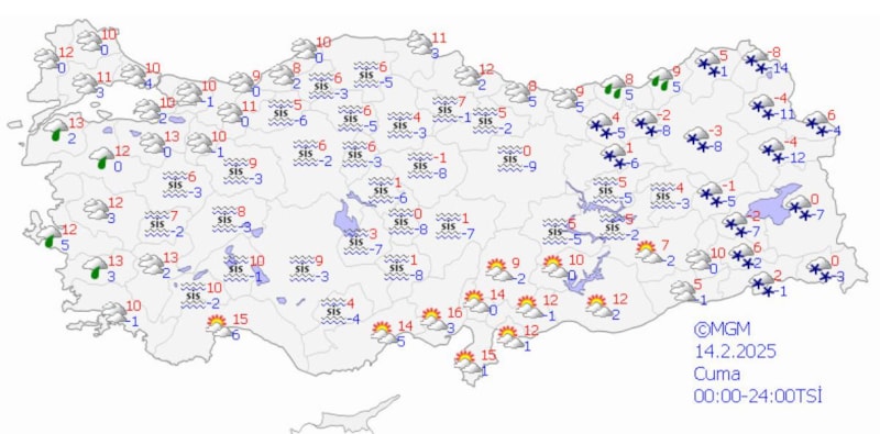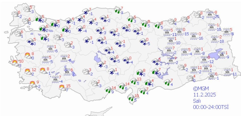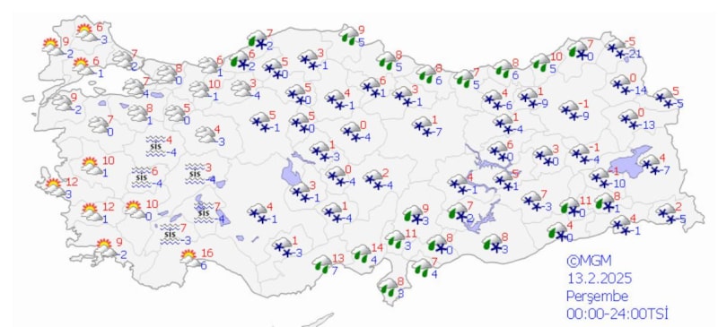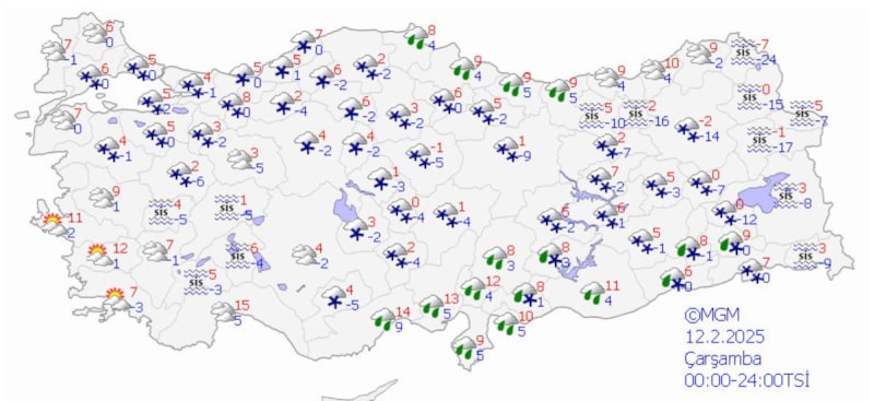 Yapılan son değerlendirmelere göre; bugün sabah saatlerinden itibaren Amasya ve Kayseri çevreleri ile Samsun'un iç kesimleri, Yozgat'ın doğu, Tokat ve Sivas'ın batı ilçelerinde görülecek kar yağışlarının yerel kuvvetli (5-15 cm) olması beklendiğinden buzlanma ve don olayı ile ulaşımda aksamalar gibi olumsuzluklara karşı dikkatli ve tedbirli olunması gerekiyor.