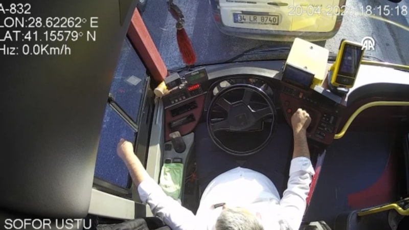 Olay anı otobüste bulunan araç kameraları tarafından kaydedildi.