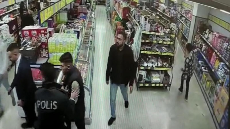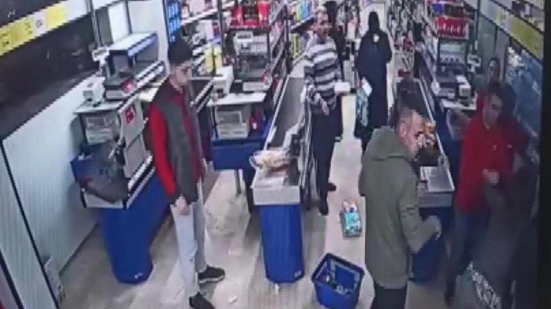 Kavga marketin güvenlik kamerasına saniye saniye yansıdı. Görüntülerde, markete gelen kalabalık grubun çalışanlarla kavga ettiği görülüyor. Ardından polisin gelip kavgaya müdahale ettiği kameraya yansıyor.