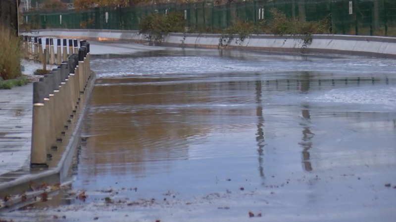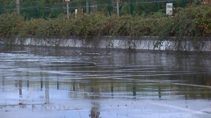 Caddenin bazı bölümlerinde su birikintileri oluştu.