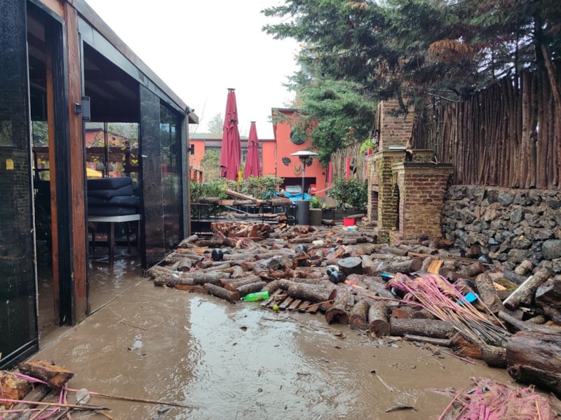 Restoranda metrelerce su birikintisi oluşurken, iş yerinin bahçesinden bodrum katında hasar meydana geldi.