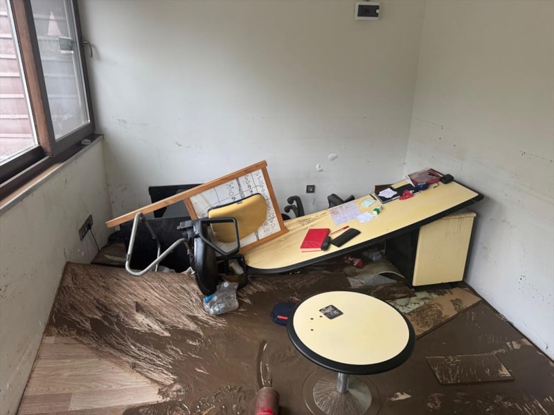 Ekipler kısa sürede sel sularını tahliye ederken iş yeri kullanılmaz hale geldi.