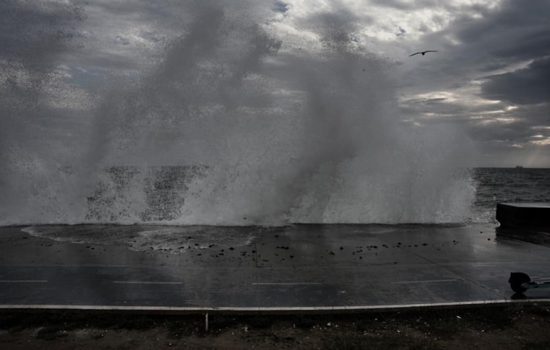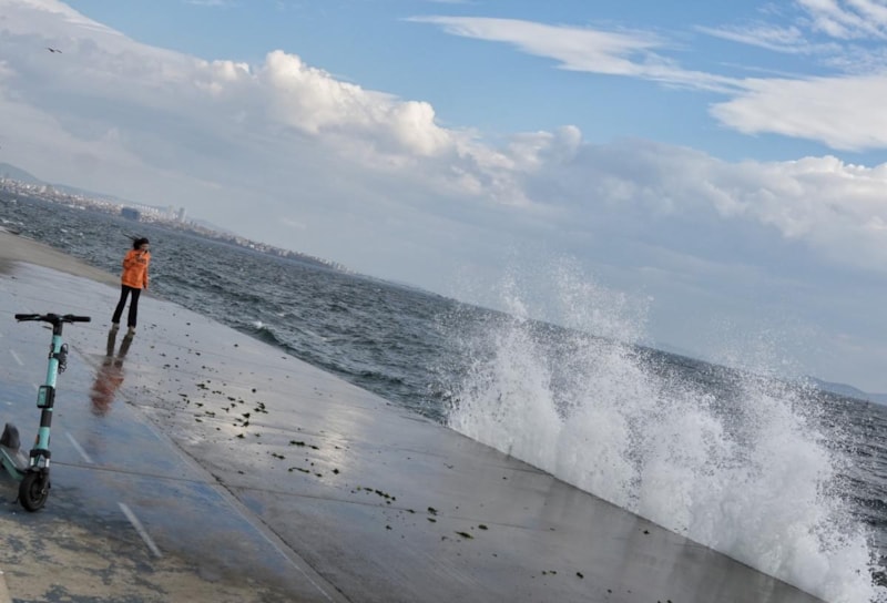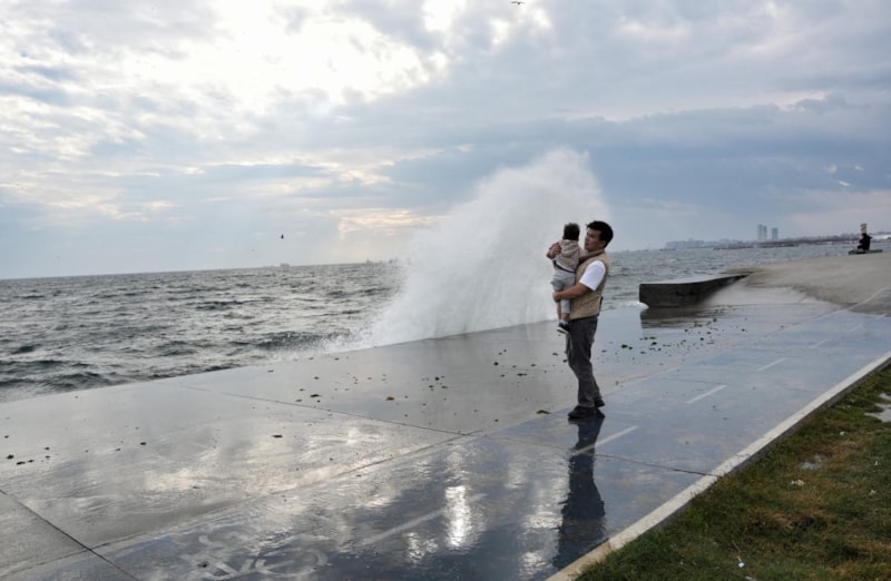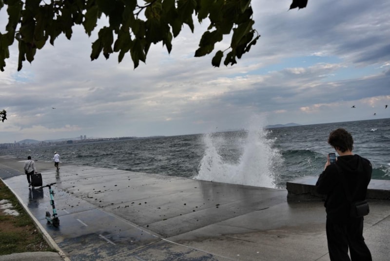 Yükselen dalgalar zaman zaman sahildeki yürüyüş alanına vurdu ve vatandaşların dikkatli olması gerektiği bildirildi.