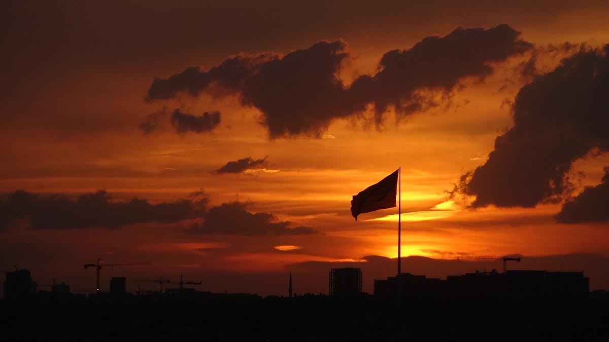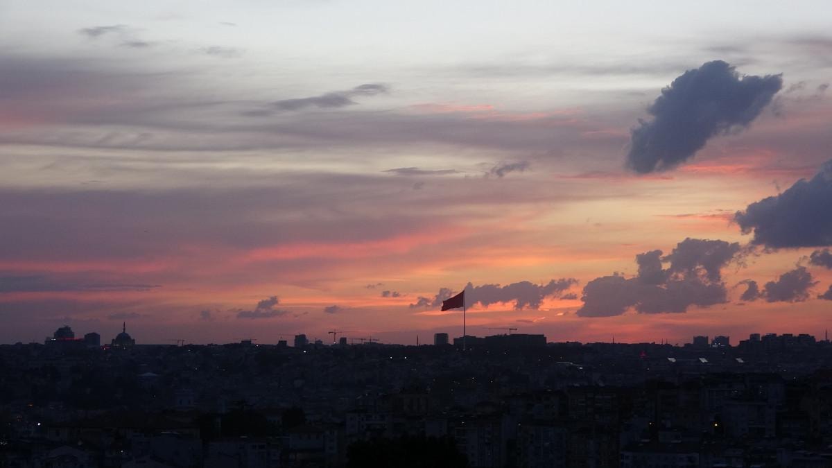 İstanbul’da gün batımında oluşan muhteşem manzara, gökyüzünü ateş kırmızısına boyadı.