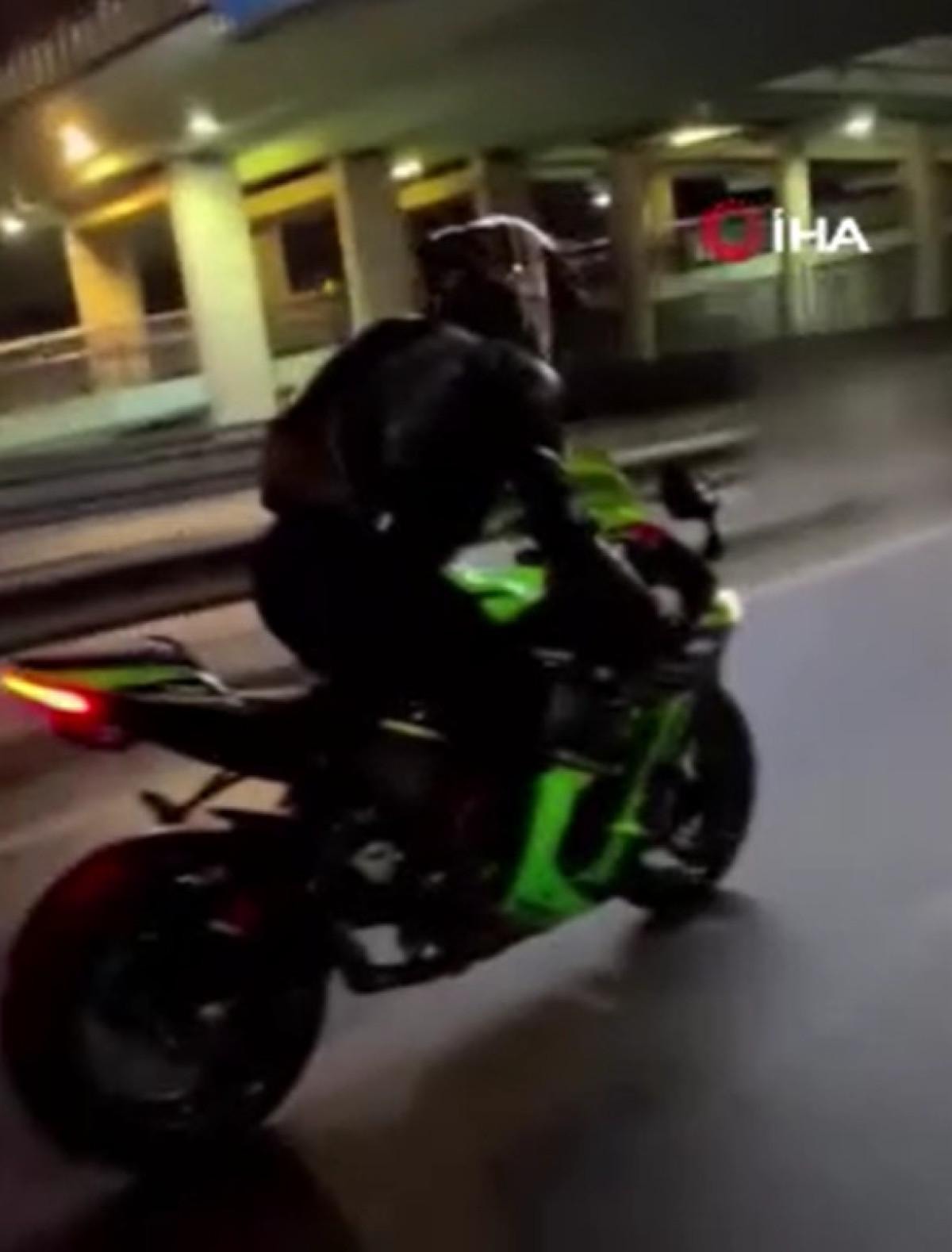 E-5 karayolunda motosikletle akrobatik hareketler yapan sürücü B.S.I’ye trafik güvenliğini tehlikeye atarak kural, yasak, zorunluluk veya yükümlülüklere uymamak, hız sınırını yüzde 50’den fazla aşmak, motosiklet ile akrobatik hareketler yapmak, karayollarında saygısız davranışlarda bulunarak araç sürmek maddelerinden toplamda 9 bin 325 TL idari para cezası kesildi.