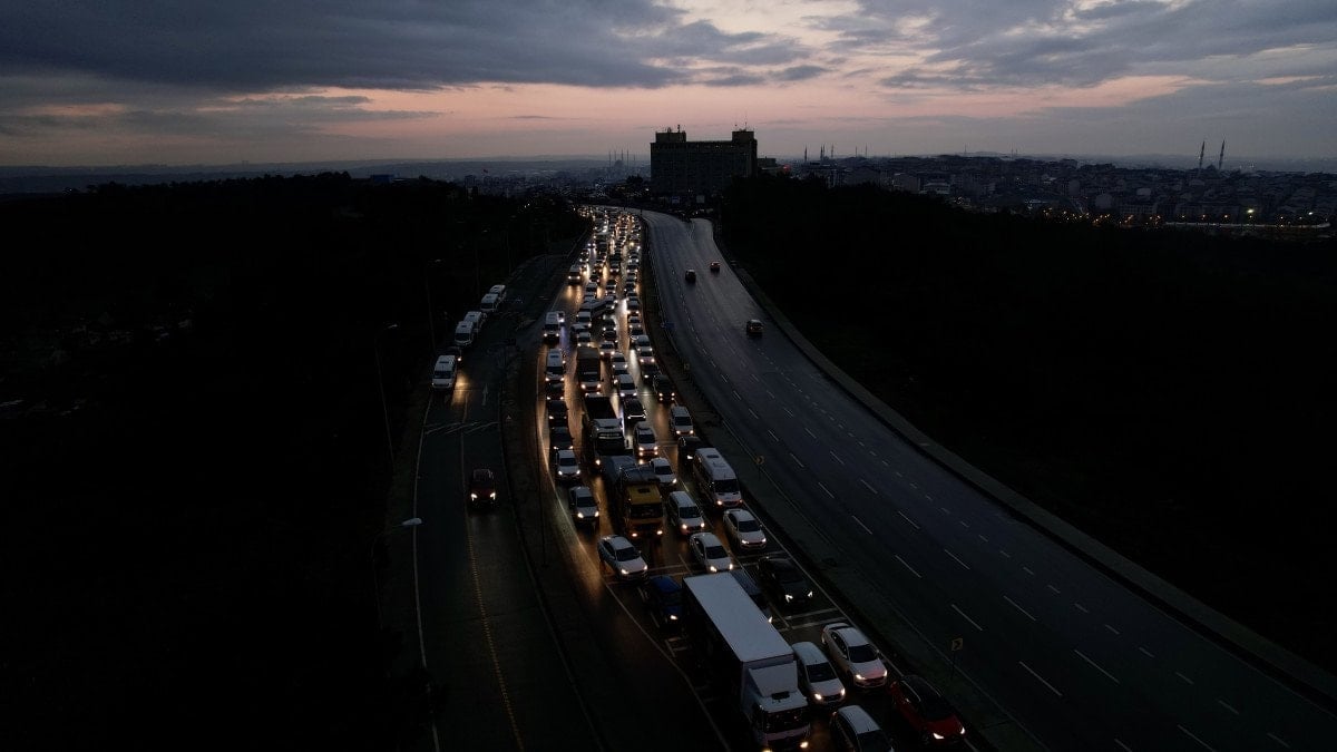 Görüntülerde araçların ilerlemekte zorlandığı ve trafiğin neredeyse tamamen kilitlendiği görüldü.