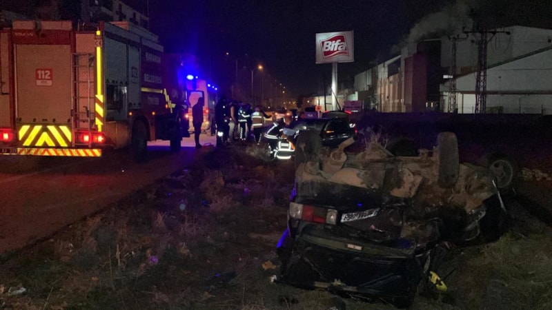 Çarpışmanın şiddetiyle iki araç da kontrolden çıkarak yol kenarına savrulurken, Fiat Tofaş takla attı.