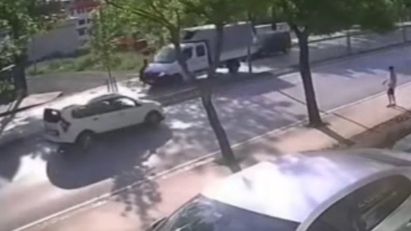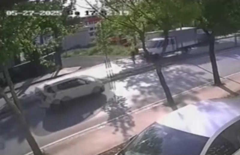 Görüntülerde karşıya geçmeye çalışan çocuğa kamyonetin çarpma anları yer aldı.