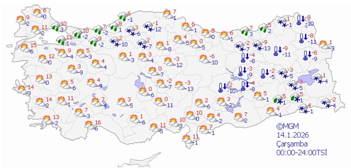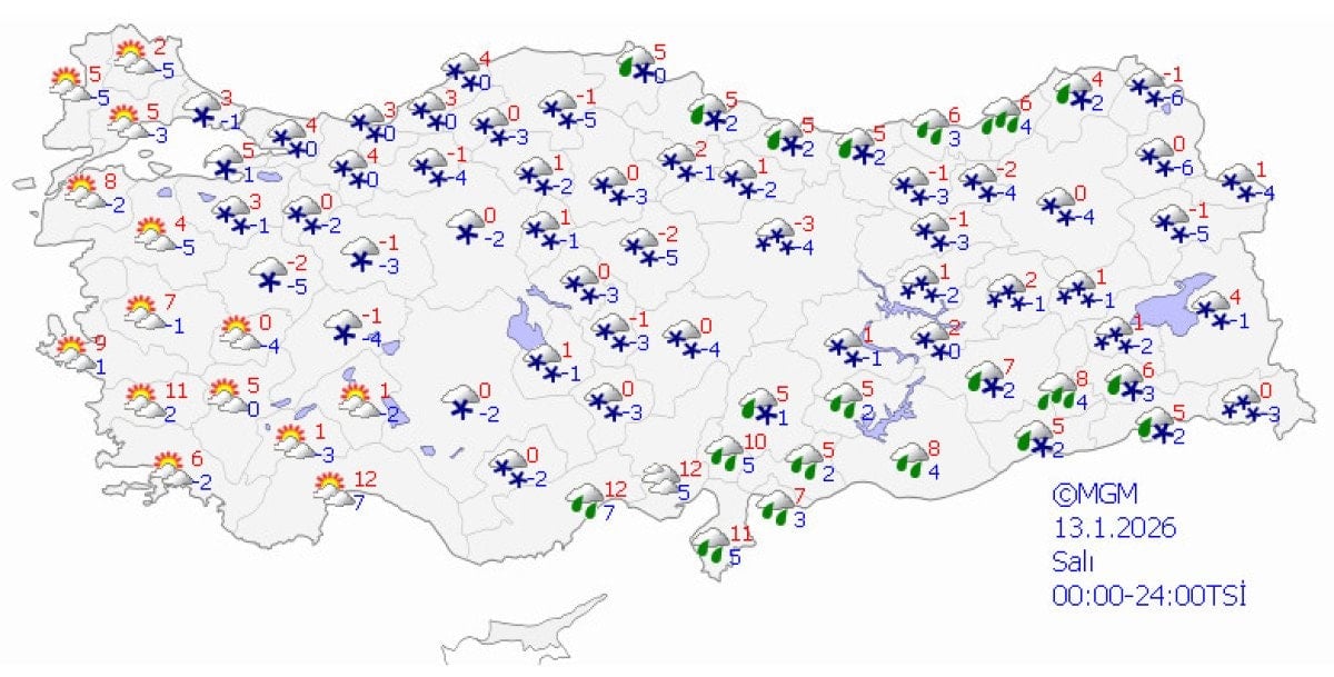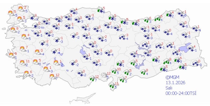 Meteoroloji Genel Müdürlüğünün değerlendirmelerine göre, kentte bugün havanın çok bulutlu olduğu, karla karışık yağmur ve aralıklı kar yağışı beklendiği belirtilen açıklamada, sıcaklıkların mevsim normallerinin altında seyredeceği ifade edilmişti.