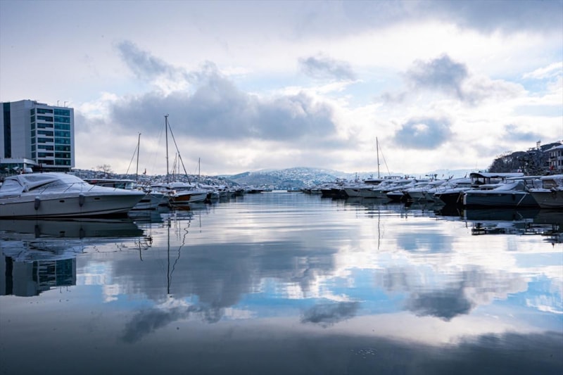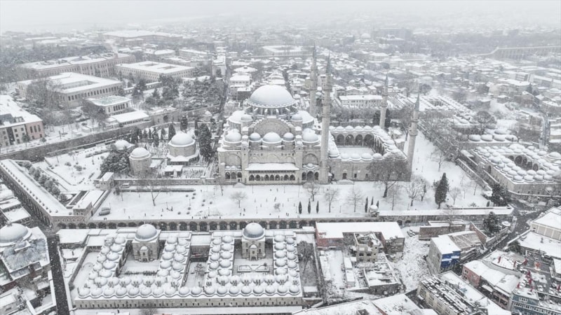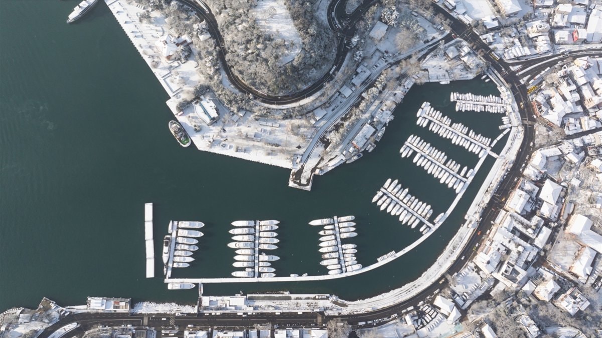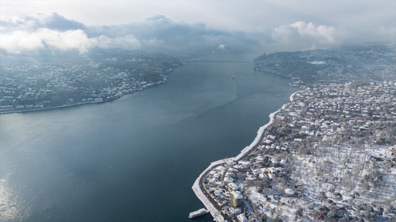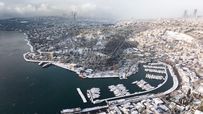 Özellikle dün akşam ve gece saatlerinde etkili olan kar yağışı sonrası beyaz gelinliğini giyen İstanbul'da görsel şölen oluştu.