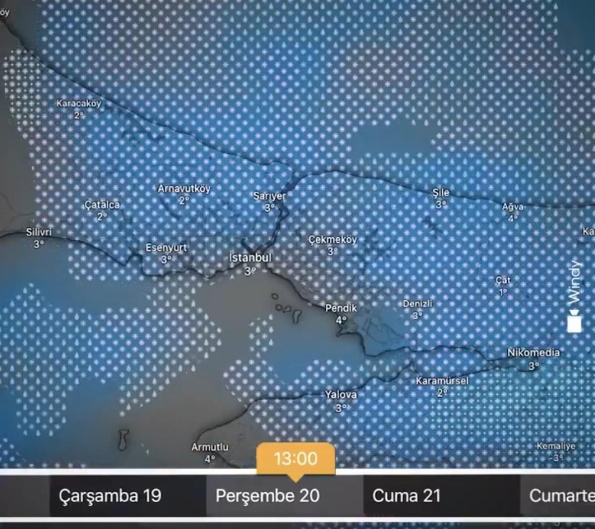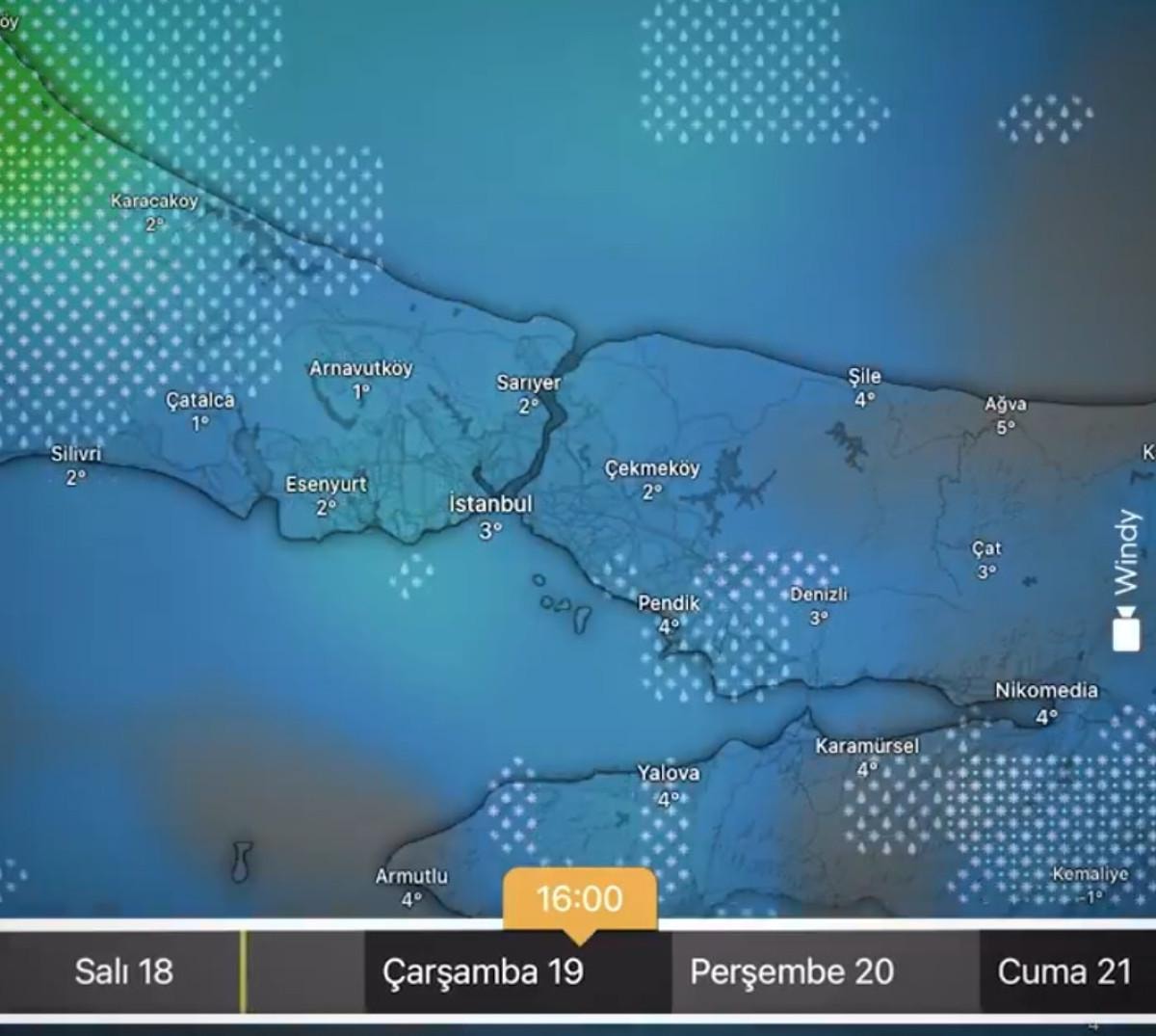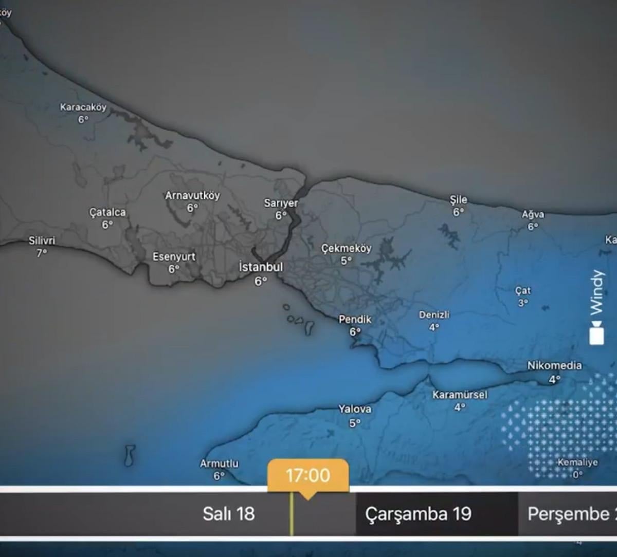 İstanbul'da 18 Şubat ile 21 Şubat arasında yaşanacak olan meteorolojik duruma dair harita ise şu şekilde: