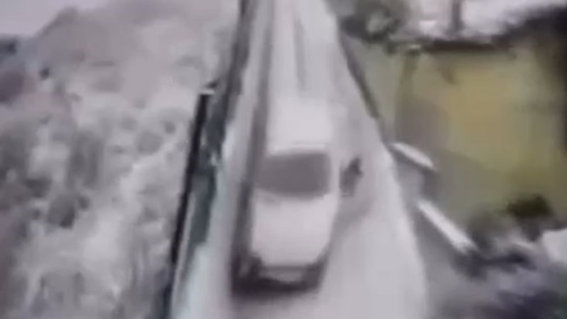 Aracın kayma anı ve sürücünün atlama anı, saniye saniye güvenlik kamerasına yansıdı. Görüntüde, aracın kaydığı ve bir adamın kapıyı açarak içinden atladığı görülüyor.