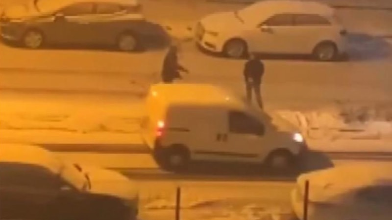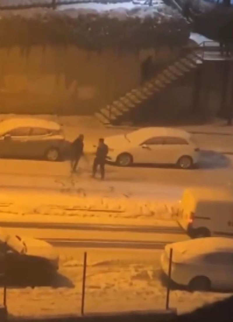 Başakşehir ilçesi Başak Mahallesi Mevlana Caddesi'nde yaşanan olayda, cadde üzerinde karlı havayı fırsat bilen 2 kişi kartopu oynarken, yoldan geçen araçlara da kartopu attı.