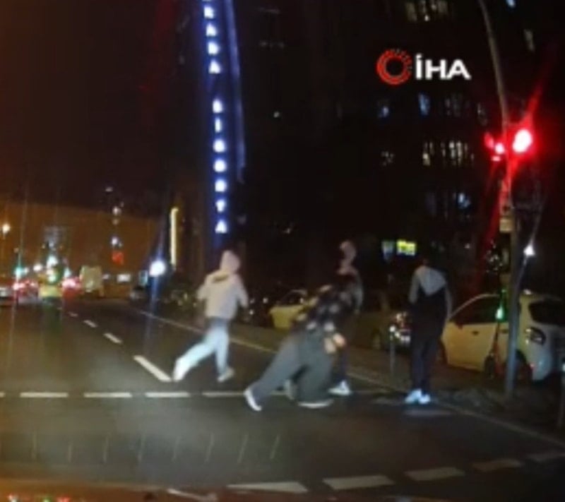 Üsküdar'da bir grup genç, kırmızı ışıkta bekledikleri sırada yaya geçidinde şınav çekti. O anlar, bir aracın kamerasına yansıdı.