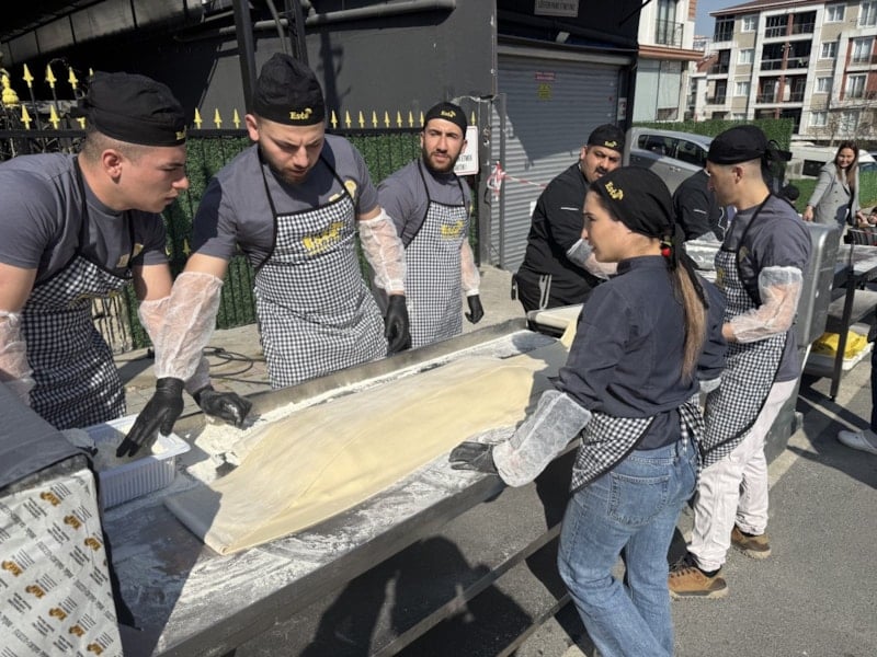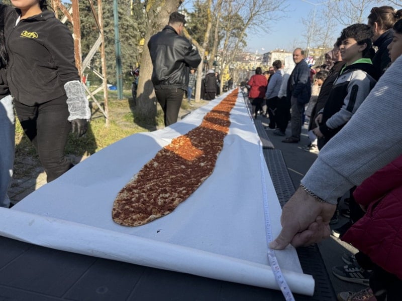 Beylikdüzü’nde hazırlanan 63 metrelik dev lahmacun, hem uzunluğu hem de lezzetiyle görenleri büyüledi. Rekor, uluslararası Guinness Dünya Rekorları listesine tescillendi.