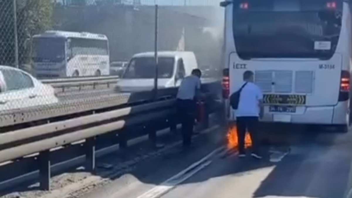 Yangın nedeniyle metrobüs seferlerinde kısa süreli aksama meydana geldi. Olay anı vatandaşlar tarafından cep telefonu kamerasıyla görüntülendi.
