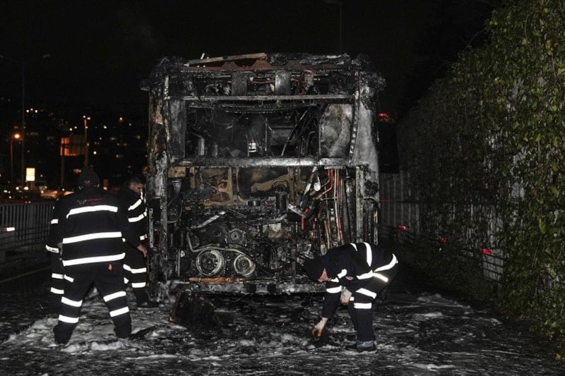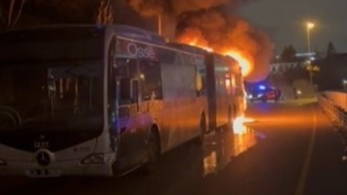Metrobüsten yükselen alevler ve duman çevredekiler tarafından cep telefonu kameralarıyla görüntülendi.