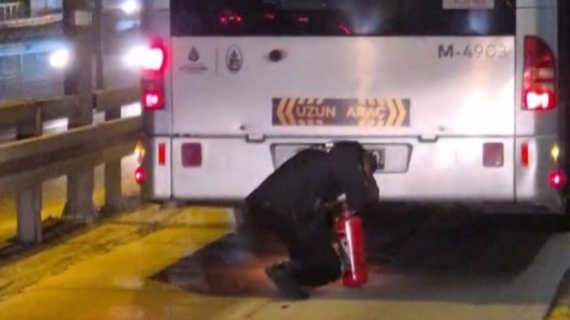 Yangını fark eden metrobüs şoförü araçta bulunan yolcuları tahliye ederek yangına müdahale etti.
