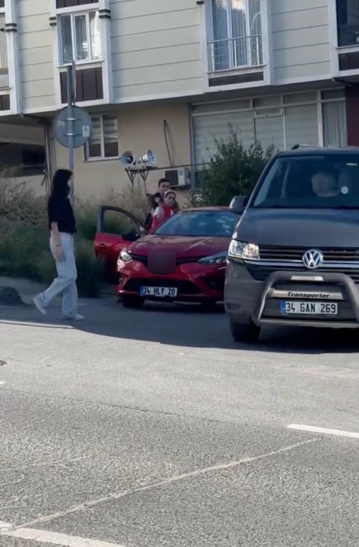Bugün öğle saatlerinde Arnavutköy Merkez Mahallesi'nde gerçekleşen olayda, bir kadın oğluna olan öfkesini araçtan çıkardı.