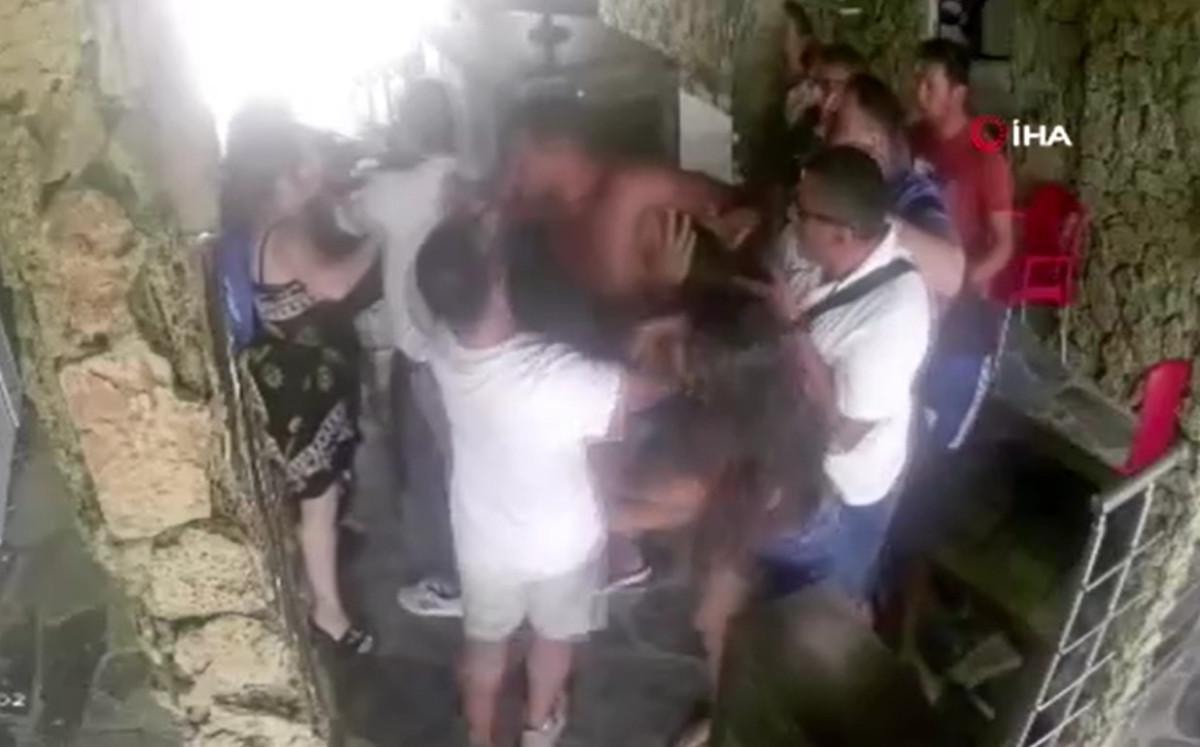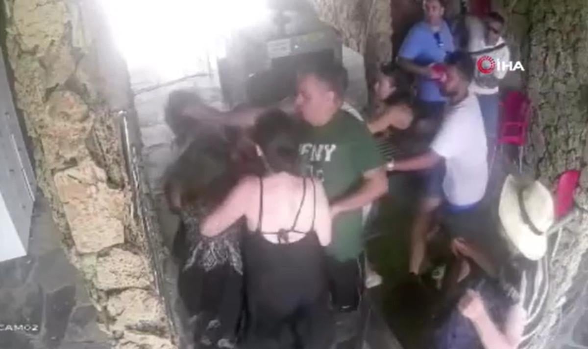 Plaj girişinde yaşanan tartışma ve kavga anları da güvenlik kamerasına yansıdı.