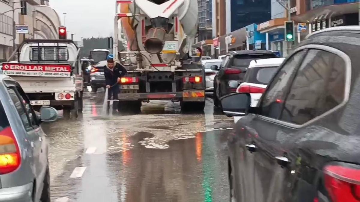 Aracı kullanan sürücüyü aracından indiren polis yola dökülen harcı yıkatarak temizletti.