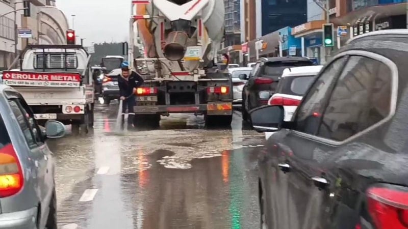 Beton taşıyan mikserden beton harcı döküldüğünü gören polis memuru, aracın sürücüsünü indirerek harcı temizletti. Yaşanan olay vatandaşla cep telefonu kamerasına anbean yansıdı.