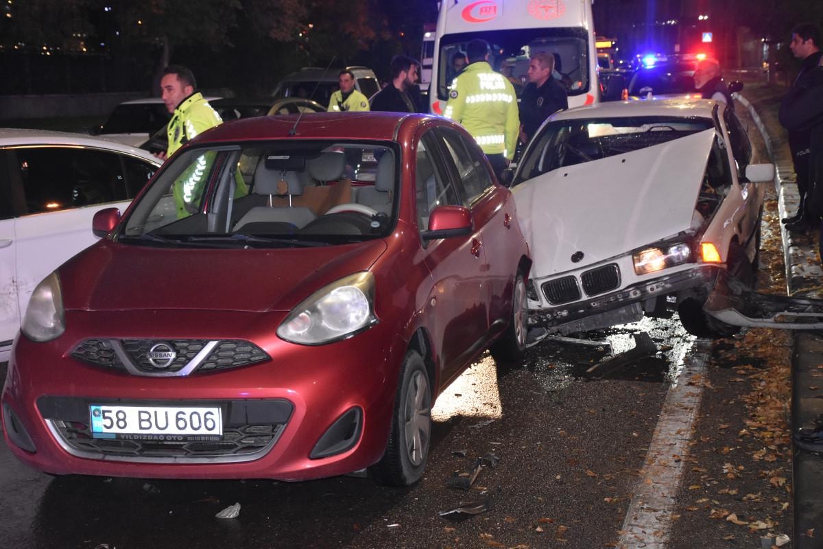 Sivas'ta saat 20.30 sıralarında Yenişehir Mahallesi Turgut Özal Bulvarı üzerinde E.E. yönetimindeki 16 ASN 532 plakalı otomobil ile sürücü isimleri öğrenilemeyen 58 AEF 562, 58 BU 606, 58 AAH 302 ve 58 AGY 123 plakalı otomobiller yağışlı havanın etkisiyle kavşakta çarpıştı.