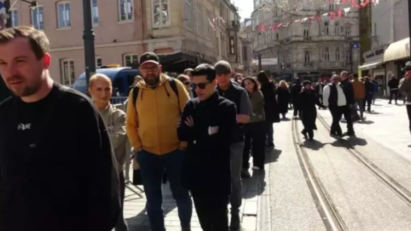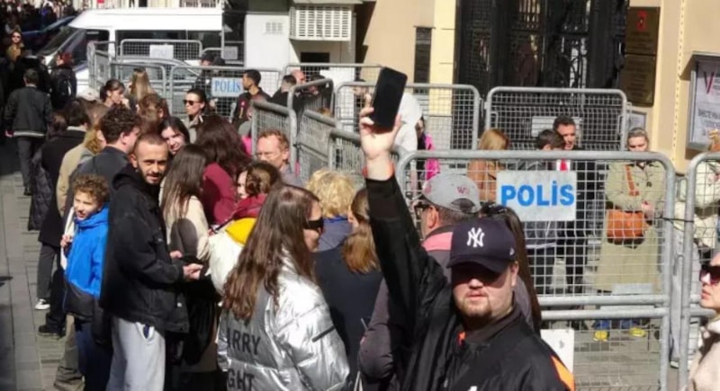 Oy kullanmaya gelen Rusya vatandaşları, konsolosluk önünde uzun kuyruklar oluşturdu.