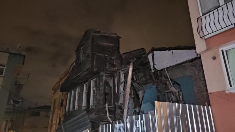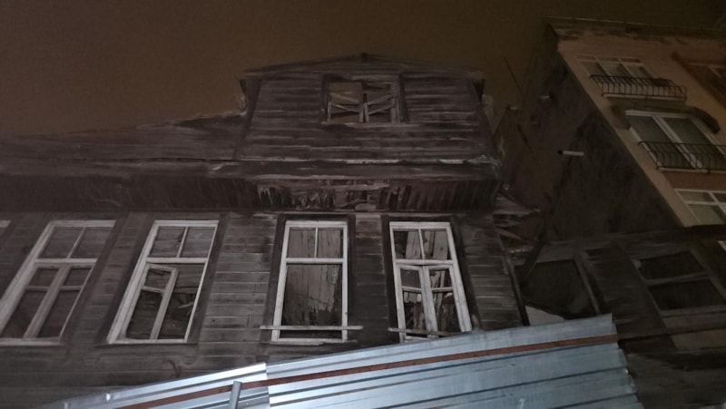 Beyoğlu Keçeci Piri Mahallesi Şeritçi Sokak'ta daha önce riskli olması nedeniyle boşaltılan ahşap metruk bir binada kısmi çökme meydana geldi.