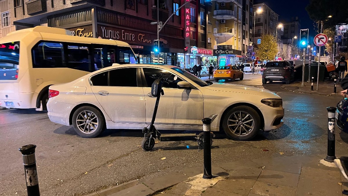İstanbul'da akşam saatlerinde Bahçelievler Kocasinan Merkez Mahallesi Mahmutbey Caddesi üzerinde, cadde üzerinde giden elektrikli scooterden 2 kişiden biri, dengesini kaybederek yere düştü.