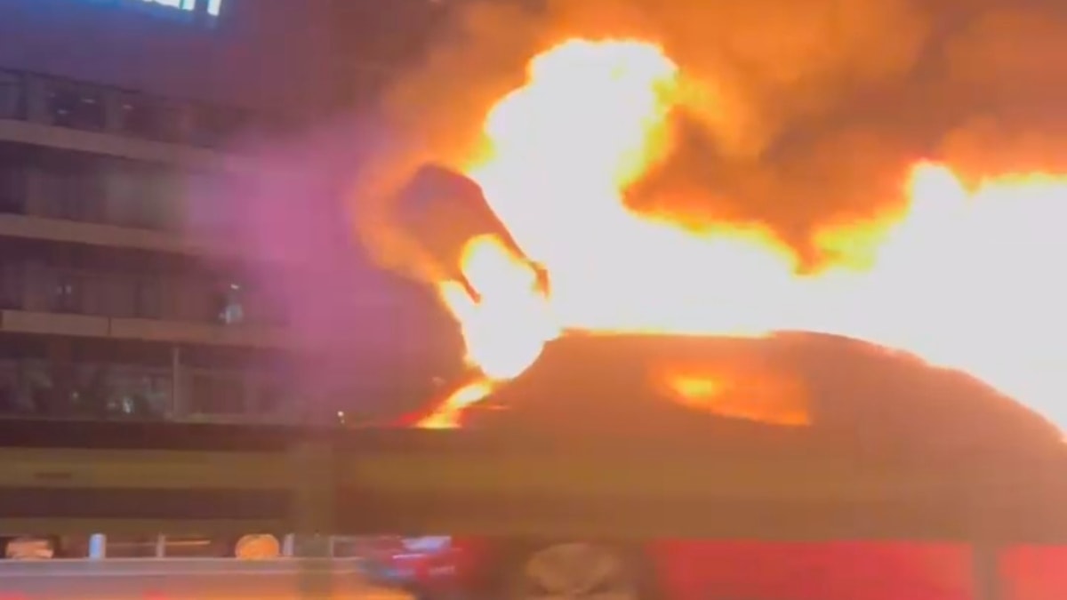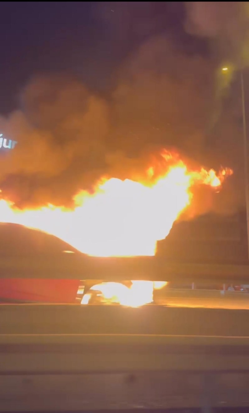 Alevlerin bütün otomobili bir anda sarmasıyla otomobil alev topuna döndü.