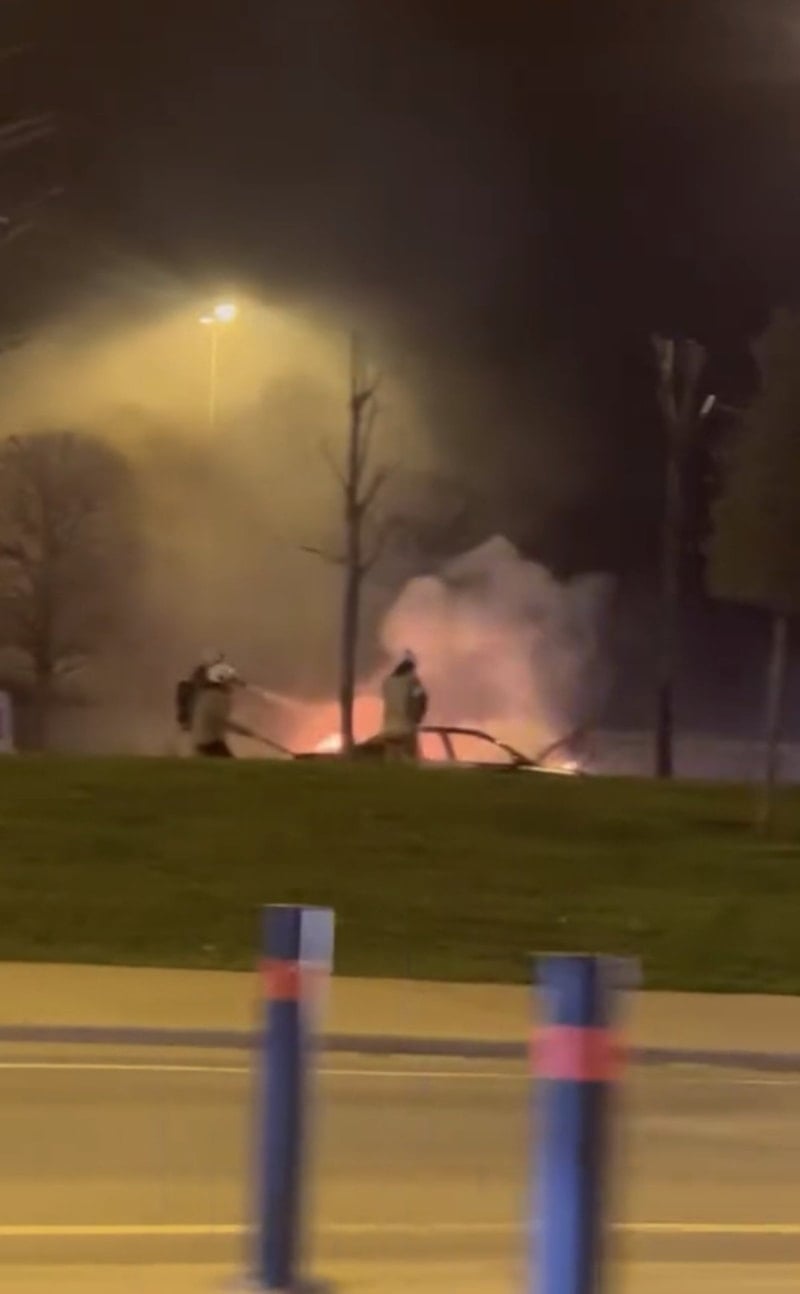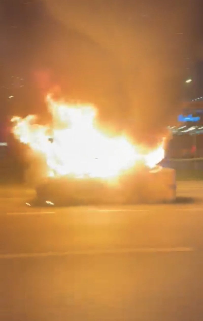 Otomobilin alev alev yandığı anlar çevrede bulunan vatandaşların cep telefonu kamerasına yansıdı.